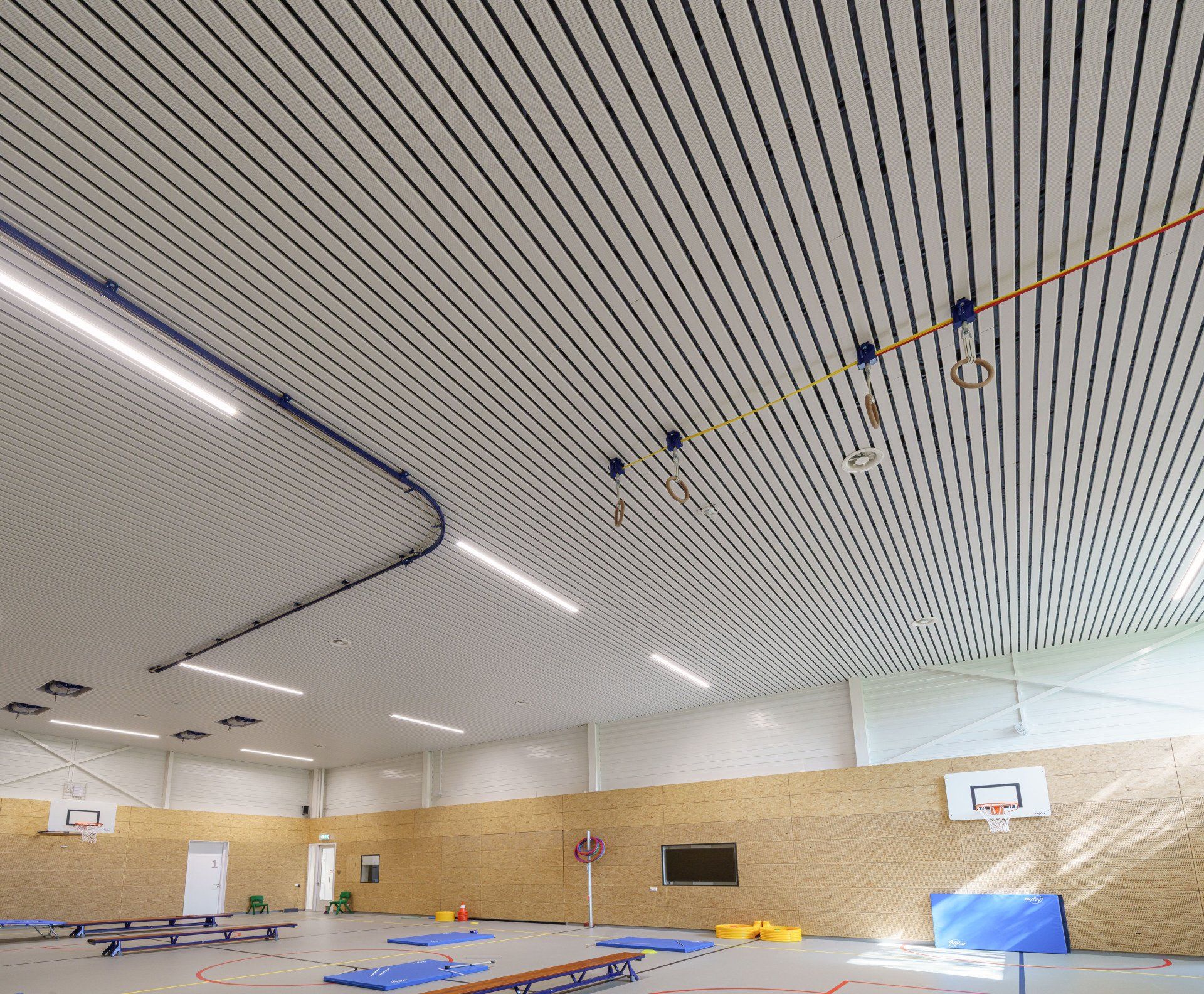 - optimale akoestische demping door geperforeerde plafondlamellen toe te passen,